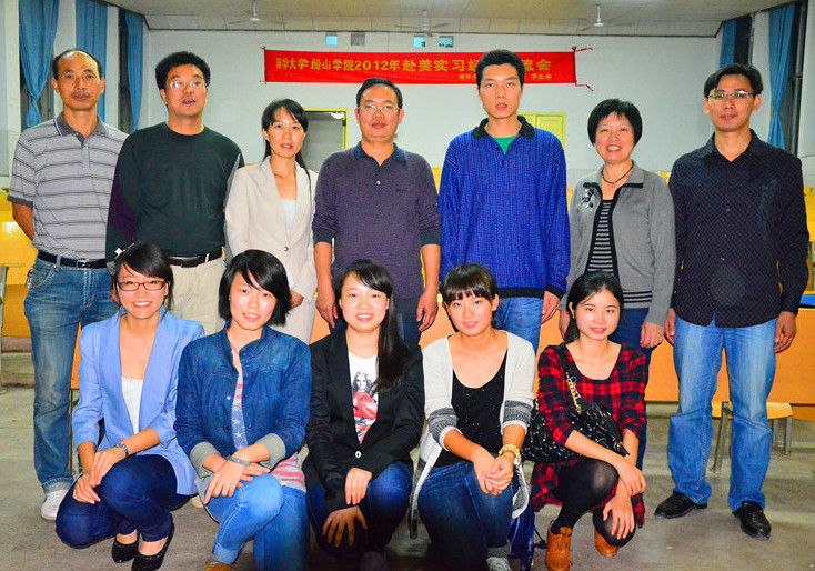 10月19日晚,太阳集团tyc1512012年赴美实习经验交流会在雨母校区2教学楼104教室成功举行。船山学院院长黄昕、院党委副书记唐康伟、副处级调研员樊华,南华大学国际交流与合作处傅华丽、院团委书记李国华、雨母校区院学工室褚书来以及留美在读博士邓攀、赴美实习归来的学生代表、船山学院2012级新生等应邀出席了此次交流会。