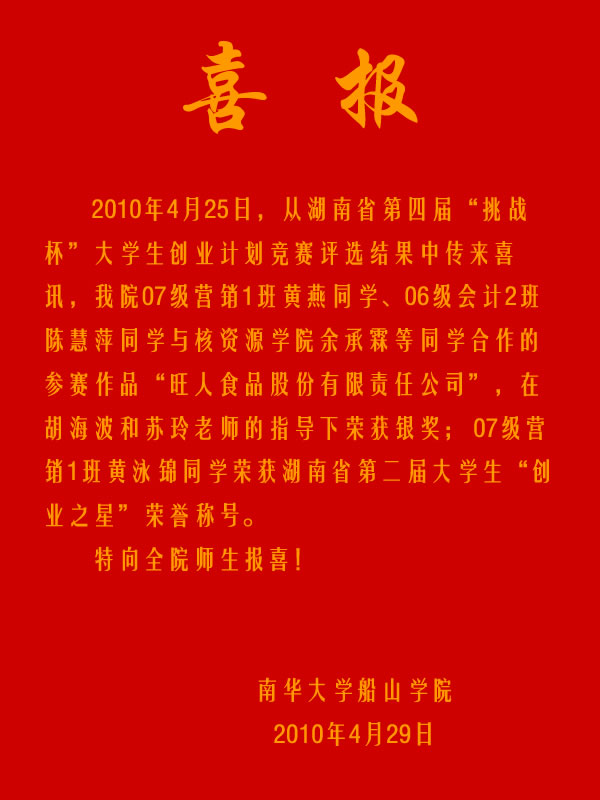 喜报—我院学生在“挑战杯”创业竞赛中获奖
