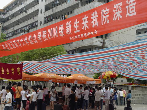 9月11日至12日,船山学院新学期迎新工作全面展开。我院在图书馆旁的灯光篮球场搭建了迎新接待处,全天候安排老师和老生轮班为新生做好报到、注册、引领、咨询服务。 为了迎接新生,船山学院成立了以院党委副书记谭建国为组长,副院长张天成、樊华、张蒙夏为副组长以及各科科长为成员的迎新工作领导小组,并在9日中午召开迎新动员大会,200余名学生干部参加了会议,精心部署了迎新工作。我院团委、学生会在10日下午就安排了迎新工作人员值班,负责新生的接待、引领、注册、搬运行李等工作,保证迎新的二天内每天24小时所有工作的各个环节都能高效运转,让新生和家长们都能感受到船山学院这个大家庭的热情与温暖。 11日早上,船山学院院长陈熙,院党委书记王吉春等领导深入现场,检查迎新工作的开展情况,并看望新生和新生家长,慰问迎新工作人员,查看并询问相关工作情况,以确保迎新工作顺利进行。对于迎新志愿者们有条不紊的工作,王书记也给出了高度评价。 08级新生的迎接工作即将结束,而新生们的大学生活才刚刚开始,师生们一定会用温暖和微笑为他们展开大学生活的新篇章,让他们在船山学院扬起风帆,向成功迈进。 据悉,12日晚,我院领导及全体辅导员还将前往新生宿舍看望新生,了解他们的住宿情况,并征求新生对宿舍条件的相关建议使新生们尽快适应大学生活。