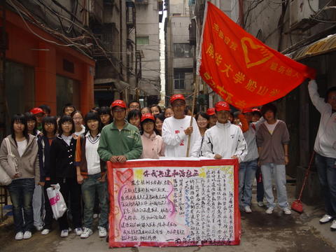 为了更好地团结动员广大团员青年,贯彻落实科学发展观重要思想和党的十七大精神,为全面建设小康社会而奉献自己的力量。10月25日上午,我院青年志愿者队在石鼓区常胜社区举办“你我共建和谐社区”的实践活动。