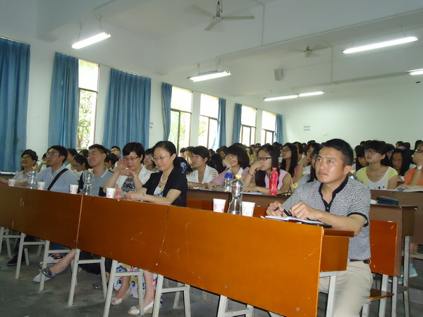 2014年6月18日下午,酷热难当。南华大学第2教学楼225教室里,却是座无虚席。船山学院12级护理学专业的同学们,在这里聆听湖南省儿童医院的领导和专家作儿科护理学教学工作讲座。湖南省儿童医院(即南华大学儿科学院)副院长赵斯君主任医师、护理教研室主任石纯南主任护士、教学办主任彭利军、教学办老师朱晟及南华大学护理学院院长廖力、船山学院院长伍衡山、副院长何啸峰、樊华、南华大学医院工作处杨科科长、船山学院2012级学工室负责人李国华、辅导员褚书来等领导、专家及老师与会。2012级护理学专业200多名学生参加会议。会议由船山学院院长伍衡山教授主持。