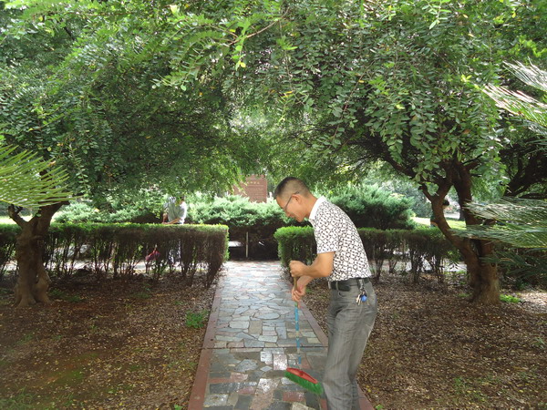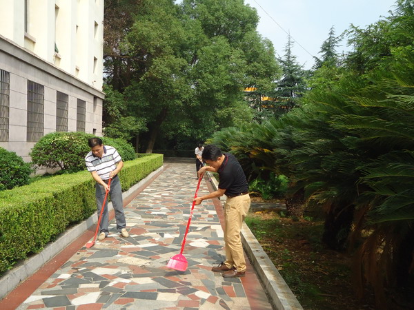 为践行党的群众路线,以实际行动建设美丽校园、美丽船山,2014年8月27日下午,船山学院领导班子成员带领部分教职工在第二教学楼前坪参加义务劳动。同志们头顶烈日、冒着高温,扫地、清理垃圾。他们辛勤劳动的身影,成了美丽校园内一道靓丽的风景。