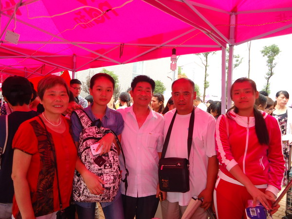 失主越先生(右二)与胡奇惠同学(左二)及其家人合影