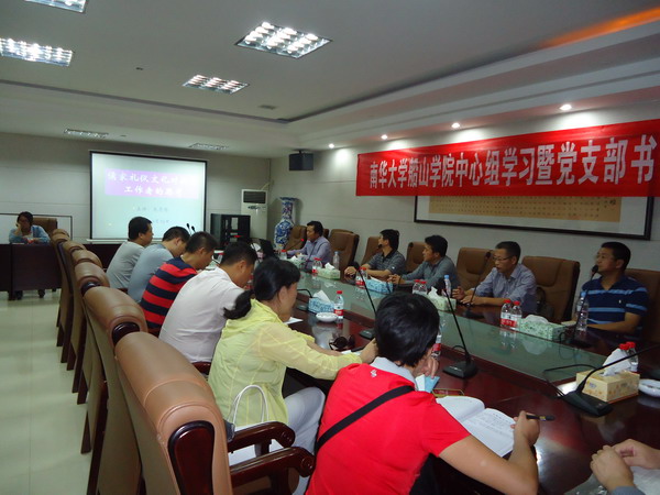 2014年10月25日下午,韶山毛泽东纪念馆2楼会议室里,座无虚席。船山学院党委中心组学习及党支部书记培训活动在这里隆重举行。参加培训活动的有学院党委中心学习组全体成员、各党支部书记及副书记。学院学生党务工作部主要干部、团学会主要干部旁听了培训讲座。