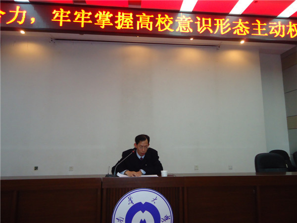 校长助理周剑良指出,意识形态工作是党的一项极端重要的工作。能否做好意识形态工作,事关党的前途命运、事关国家长治久安、事关民族凝聚力和向心力。高校肩负着培养社会主义建设者和接班人的重任,必须切实加强高校意识形态工作,牢牢把握其主动权。各部门要突出马克思主义在全校工作的指导地位、深入开展主题宣传教育活动等,不断加大理想信念教育的力度;要牢牢掌握意识形态领域阵地,夯实共同奋斗的精神根基。