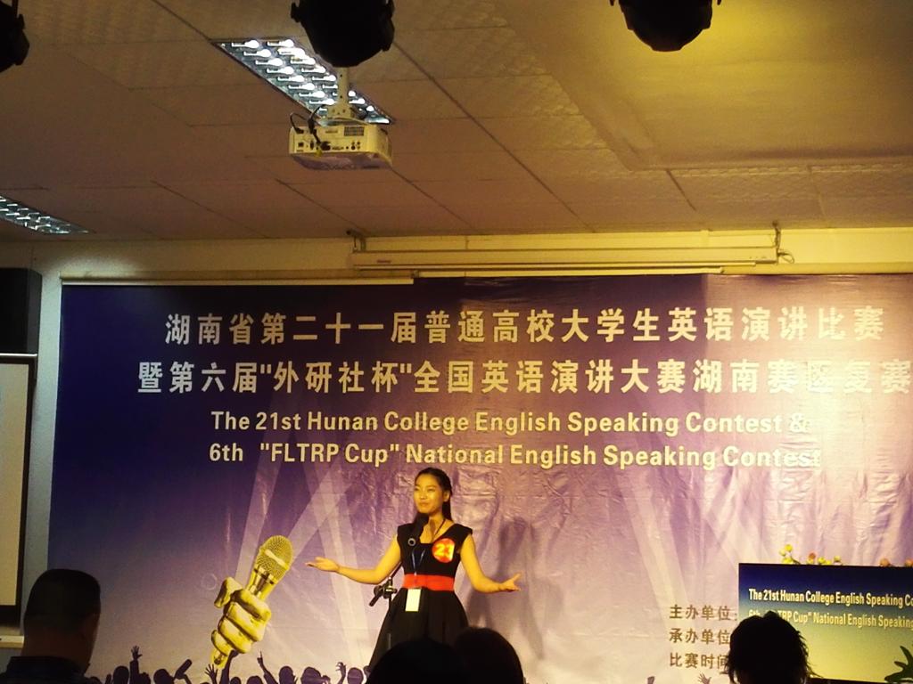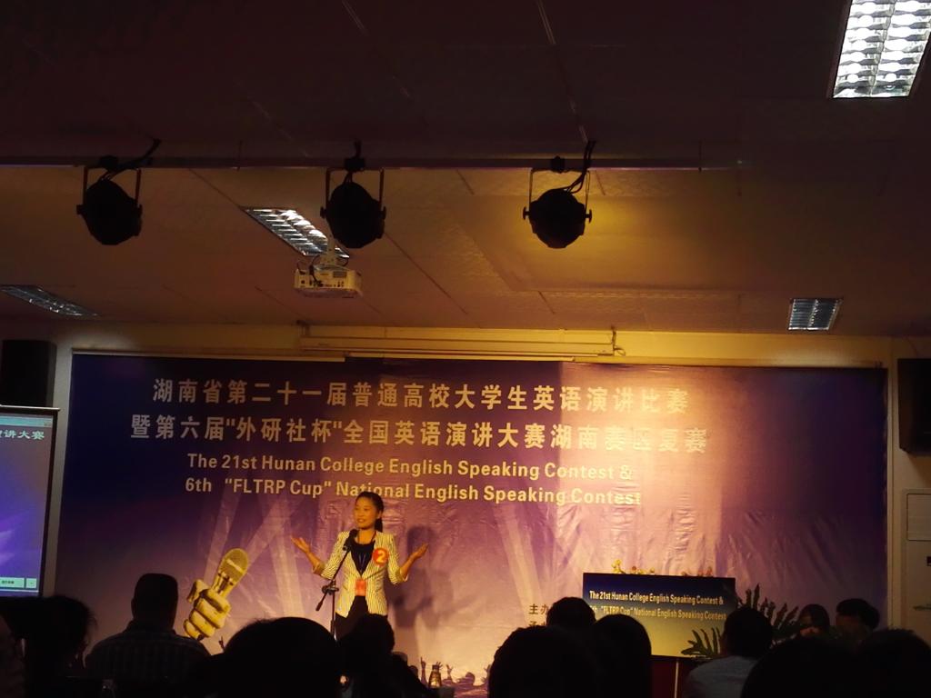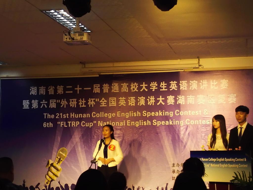 2015年10月24日,在怀化学院举办的湖南省第二十一届普通高校英语演讲比赛暨“外研社杯”全国英语演讲大赛湖南赛区复赛中,船山学院2013级英语02班梅青获得专业组三等奖,船山学院2013级会计03班赵伊、2013级工管01班李婷获得非专业组优胜奖。