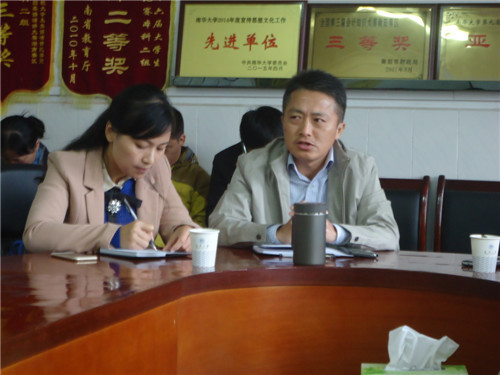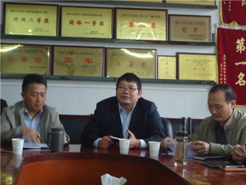 南华大学党委副书记罗成翼(中)主持会议并作指示