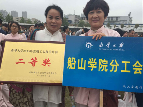 2015年11月21日上午,南华大学教职工太极拳比赛在红湘校区第一田径场举行。船山学院分工会代表队的队员们精神饱满、队列整齐、动作规范,赢得了现场观众的阵阵掌声,展现了学院教师积极向上的精神风貌,最终喜获南华大学教职工太极拳比赛二等奖。