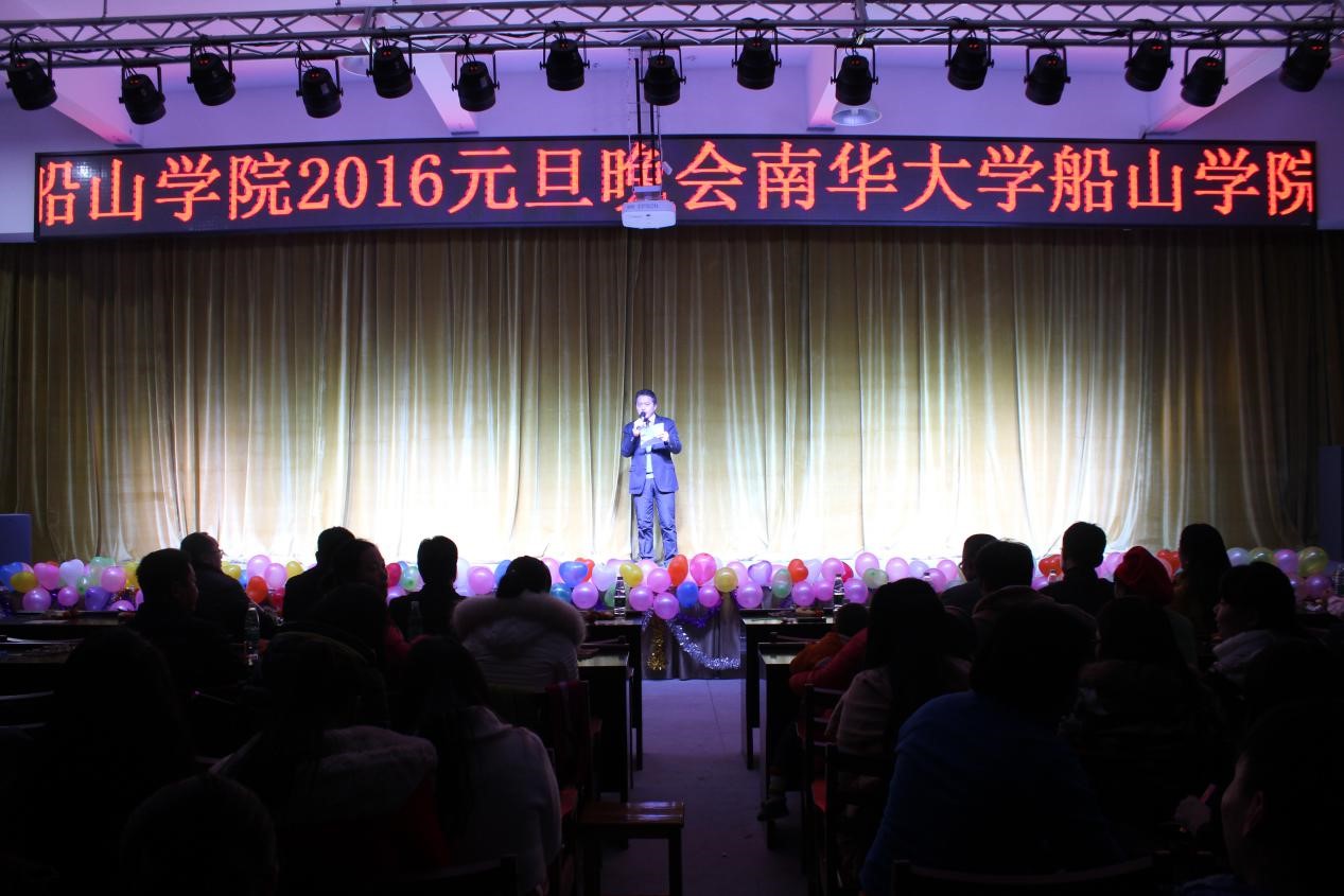 晚会伊始,开场舞《南华赶集队》活力四射,点燃了全场气氛。船山学院院长伍衡山教授为本次晚会致辞,他首先对观看晚会的老师们和同学们表达了新年祝福,并总结了我院在2015年中取得的骄人成绩,伍院长强调,新的一年,学院仍然要坚持“以人为本、以学生为本”的育人理念。