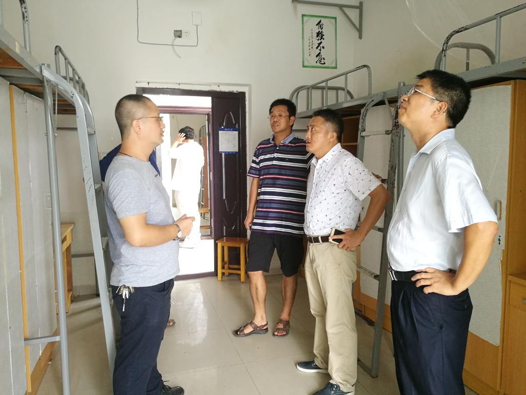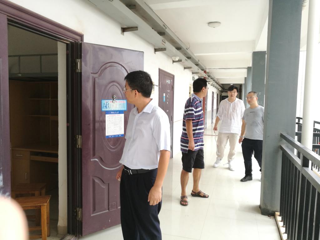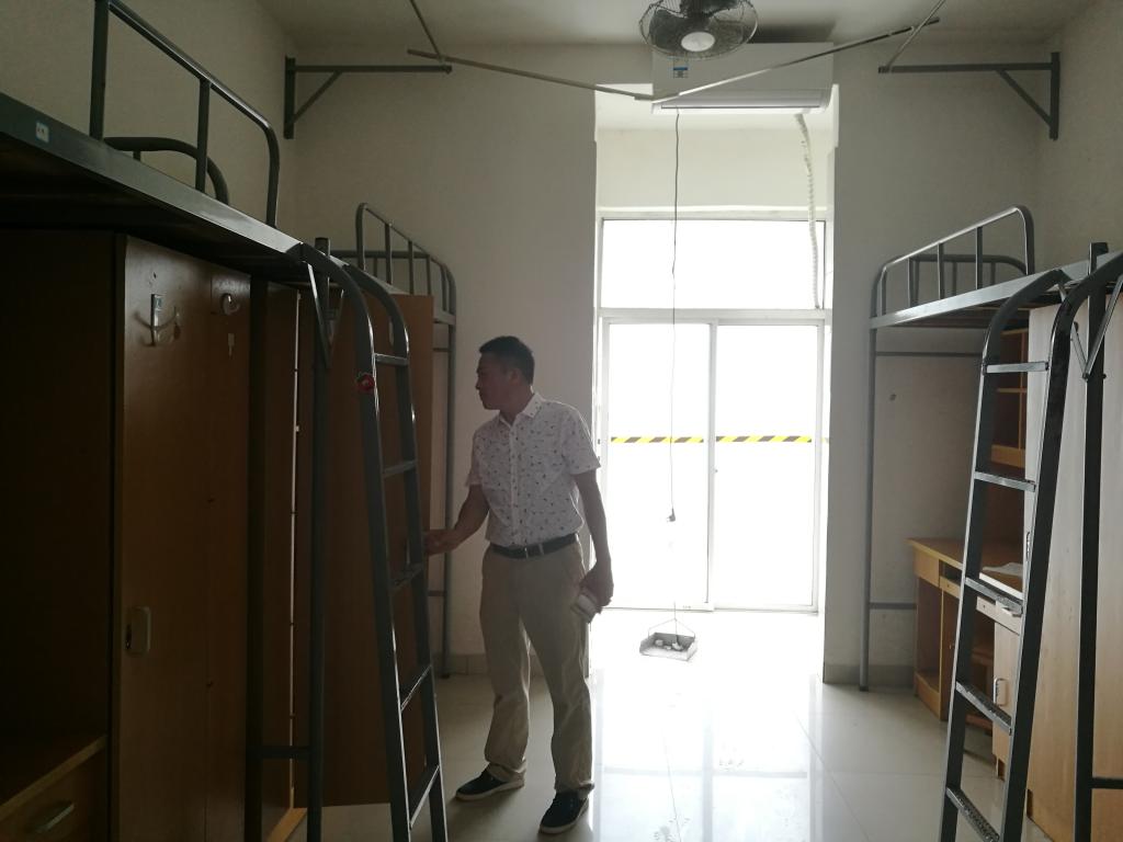 在烈日炎炎下,我院领导一行逐一走进新生入住的每一间宿舍,仔细检查着每一处存在安全隐患的设施,并认真记录着每一处需要报修的设备,力争在新生正式入住前完善宿舍各项设备。
