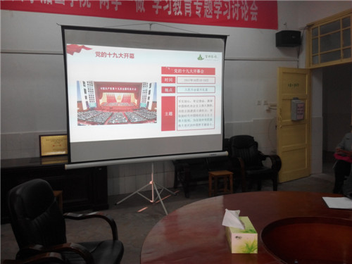学院院长伍衡山讲话,他表示,十九大的召开,是关乎每一个中国人的重大事情。学院领导班子和大家曾经一同观看了十九大开幕会直播,关注着十九大的新动向,学习十九大报告中的重大论断,领会国家发展战略布局。伍院长强调,作为高校教师,我们要有时代的使命感和责任感,一是要将自身发展和国家发展相结合,投身国家建设,在新时代,为新目标、新征程作出贡献;二是要在教育教学、管理服务等各项具体工作中贯彻十九大精神,把思想政治工作贯穿教育教学全过程,培养学生树立正确的人生观、价值观和职业观。
