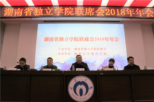 为学习贯彻全国教育大会精神,促进湖南省各独立学院的学习交流,探讨独立学院的发展。2018年12月13-15日,湖南省独立学院联席会2018年年会在太阳集团tyc151成功召开。本次年会由湖南省独立学院联席会主办、太阳集团tyc151承办。湖南省教育厅民办教育处幸勇处长、刘继伟调研员、陈伟科长,南华大学党委委员、副校长及船山学院董事长何旭娟及全省各独立学院的院长、党委书记及代表共60余人参加会议。
