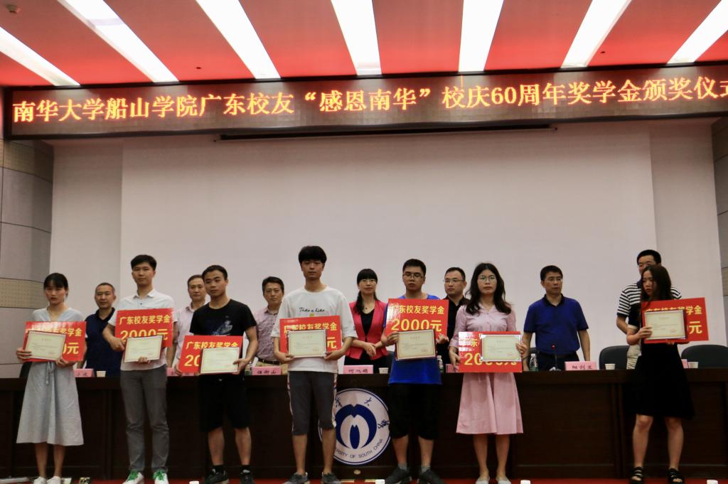 船山学院广东校友会自2016年12月17日成立以来,积极加强与学院的联系,多人多次来学院举行经验交流分享,多次来学院招聘毕业学生,为学院设立了2个实习就业基地。为积极响应南华大学建校60周年“迎校友,回母校,建名校”的活动,广东校友会决定在船山学院设立10万奖学金,用于奖励品学兼优的优秀大学生。这次捐赠的主要有易毛倪、吴华平、肖培、李宣、胡忠仁、谭利轲、贺子剑等7名校友。奖学金设立后,为组织好奖学金的评定,发挥其教育作用,学院按照奖学金的评定宗旨和要求,成立了组织机构,出台了评定方案,明确了评选条件和程序,通过个人申报,班级推荐,年级初审,年级公示,学院评定工作小组审核,学院党政联席会议审定并公示,评选了50名品学兼优、励志成才的家庭经济困难学生。