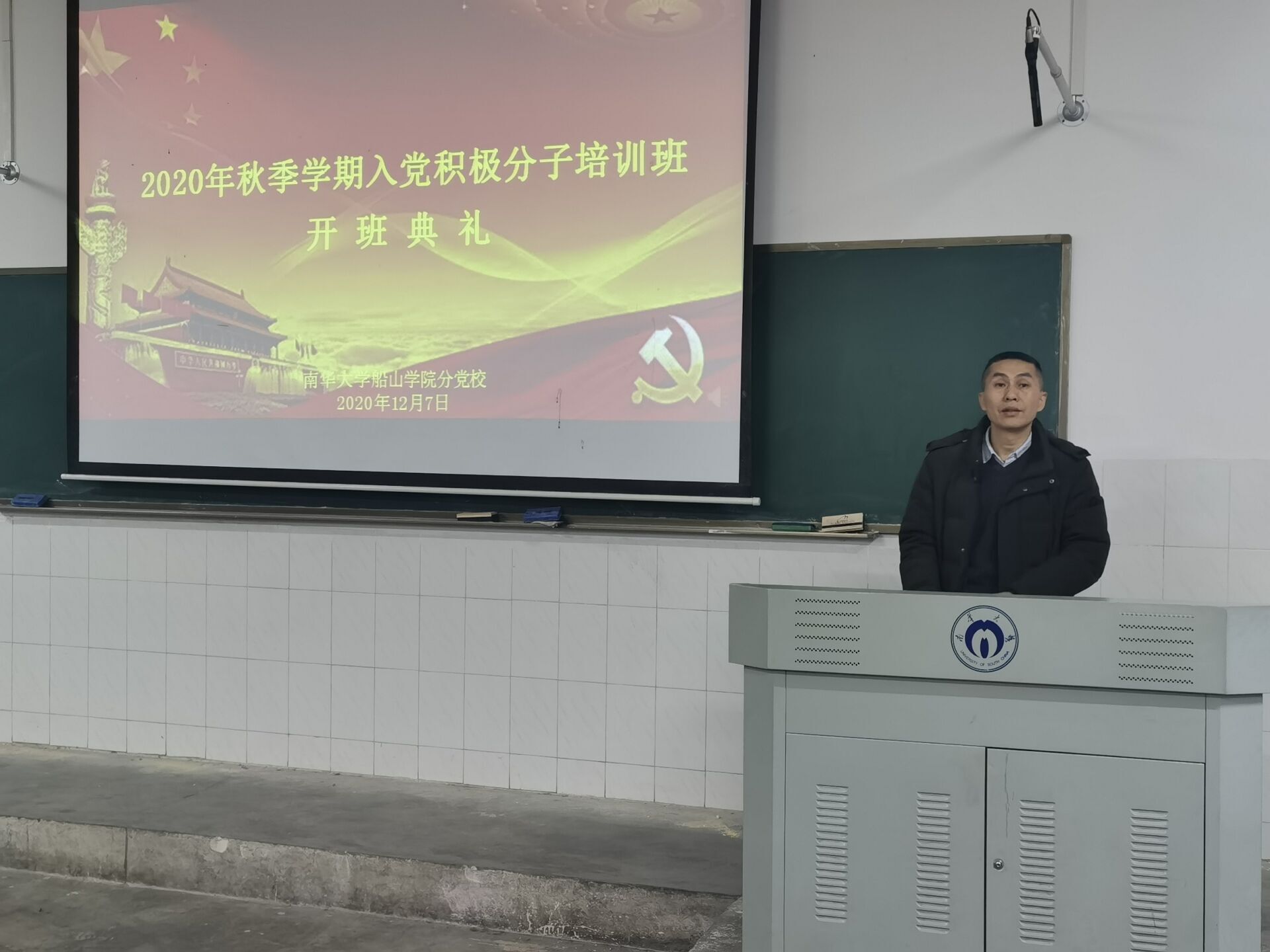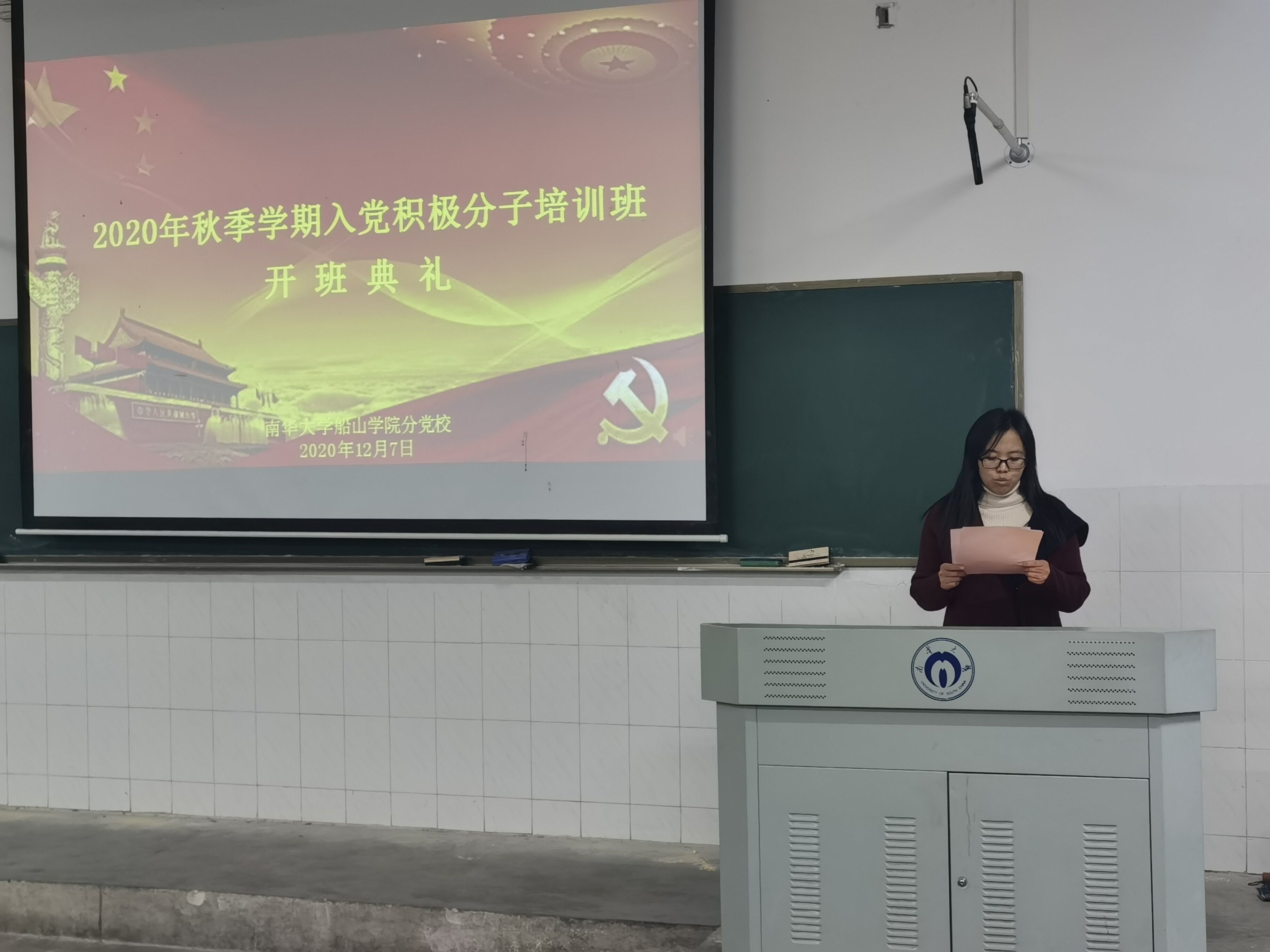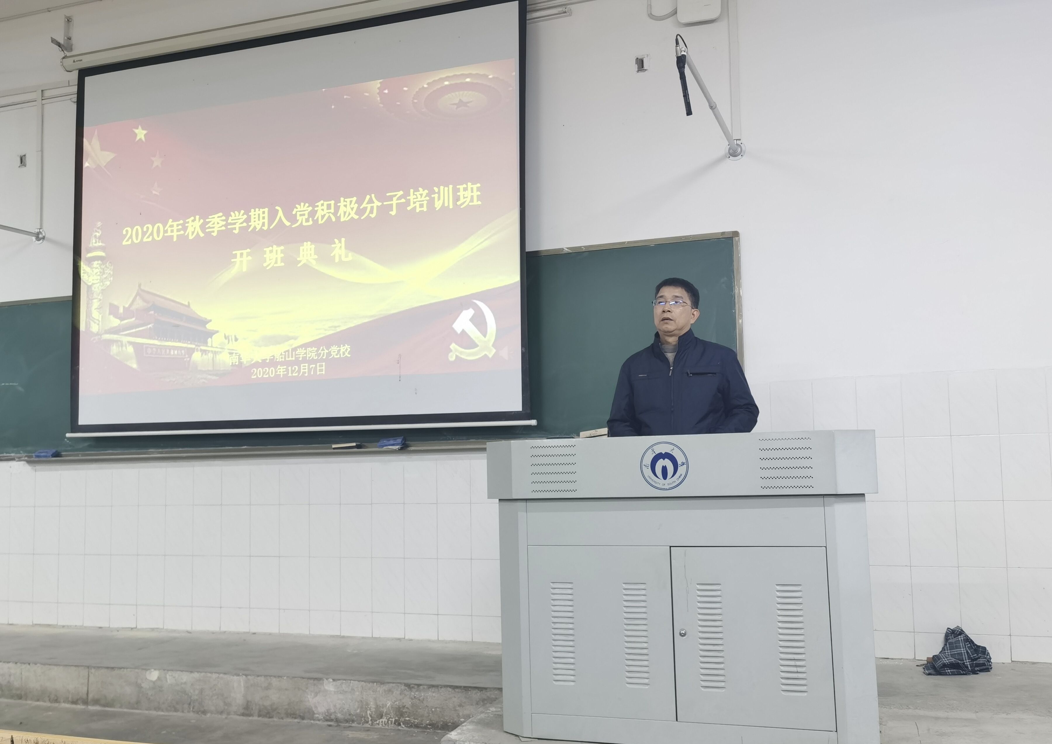 12月7日晚,船山学院分党校于红湘校区二教225教室举行2020年秋季学期入党积极分子培训班红湘校区一班开班仪式。船山学院分党校校长、党委书记阳剑兰,分党校副校长、党委副书记旷勇、学工室主任周英,2017级辅导员江娴出席开班仪式。开班仪式由旷勇副书记主持。