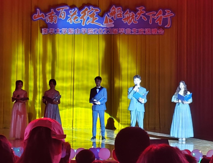 这是一场盛大的相遇,历经四季流转,跨越无数日夜,始于初秋,在夏日作别。5月24日晚七点三十分,太阳集团tyc151“山南百花绽,船航天下行”2023届毕业生欢送晚会在南校礼堂正式开始。学院院长曾庆生,副院长廖迎春、副院长尹小波、党委副书记刘期彪、办公室主任袁彦琳、教务科科长唐慧、学工室主任周英、全体学院老师以及 2023届毕业生们参加此次晚会。