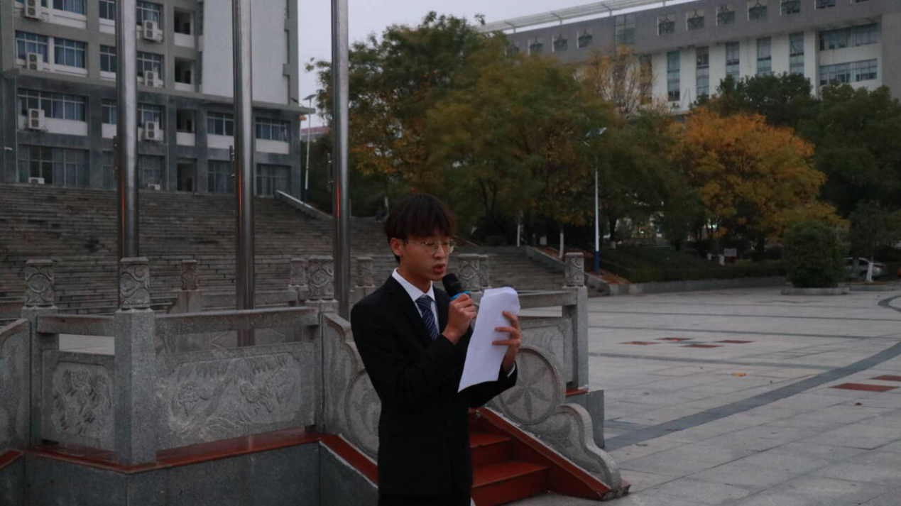 随后,学生代表易浩在国旗下进行了题为《以船山精神书强国篇章,以青春力量绘未来蓝图》的演讲,“十年寒窗诚然刻苦,四载春华更须拼搏”,他说:“我们新时代南华学子,应当激扬奋发有为的志气,在拼搏中释放激情、追逐理想,于时代华章上再添一笔南华少年意气飞扬!”