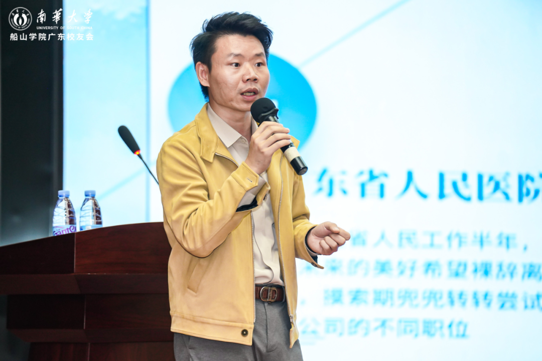 12月16日,时值南华大学建校65周年之际,太阳集团tyc151广东校友会召开第二次校友代表大会,换届改选会结束后,船山学院广东校友会执行会长、2005级机械设计及其自动化专业校友吴华平主持了师生座谈会、交流分享会。本次分享会邀请了2007级护理专业罗海瑜、08级临床专业罗俊男、2011级矿资专业张学良校友为校友们分享经验。