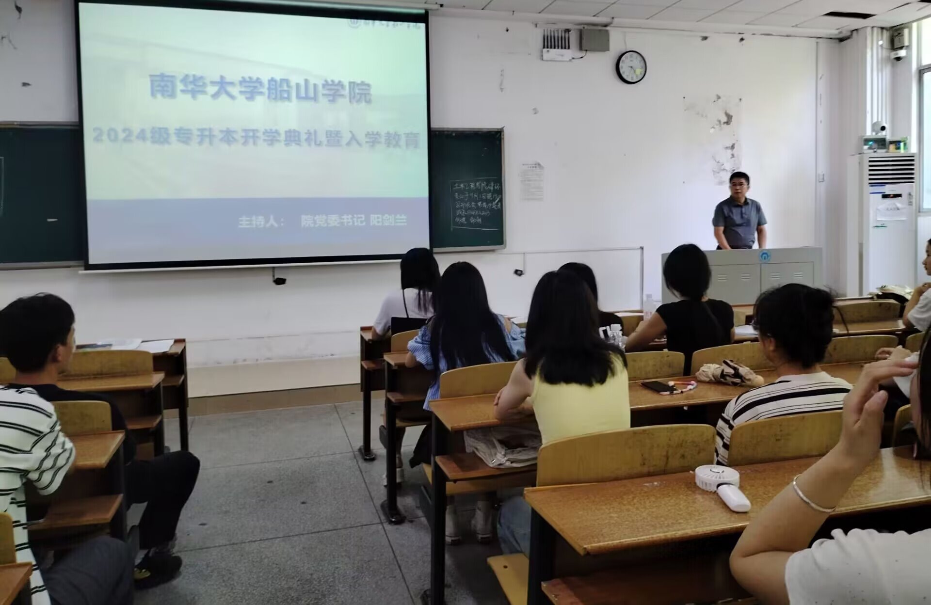 9月1日下午,船山学院在南华楼112教室举行2024级专升本开学典礼暨入学教育。学院院长曾庆生、党委书记阳剑兰、副院长廖迎春、党委副书记殷志、周英、唐慧、段元润、24级专升本班助、2024级专升本新生等160余人参加此次会议。