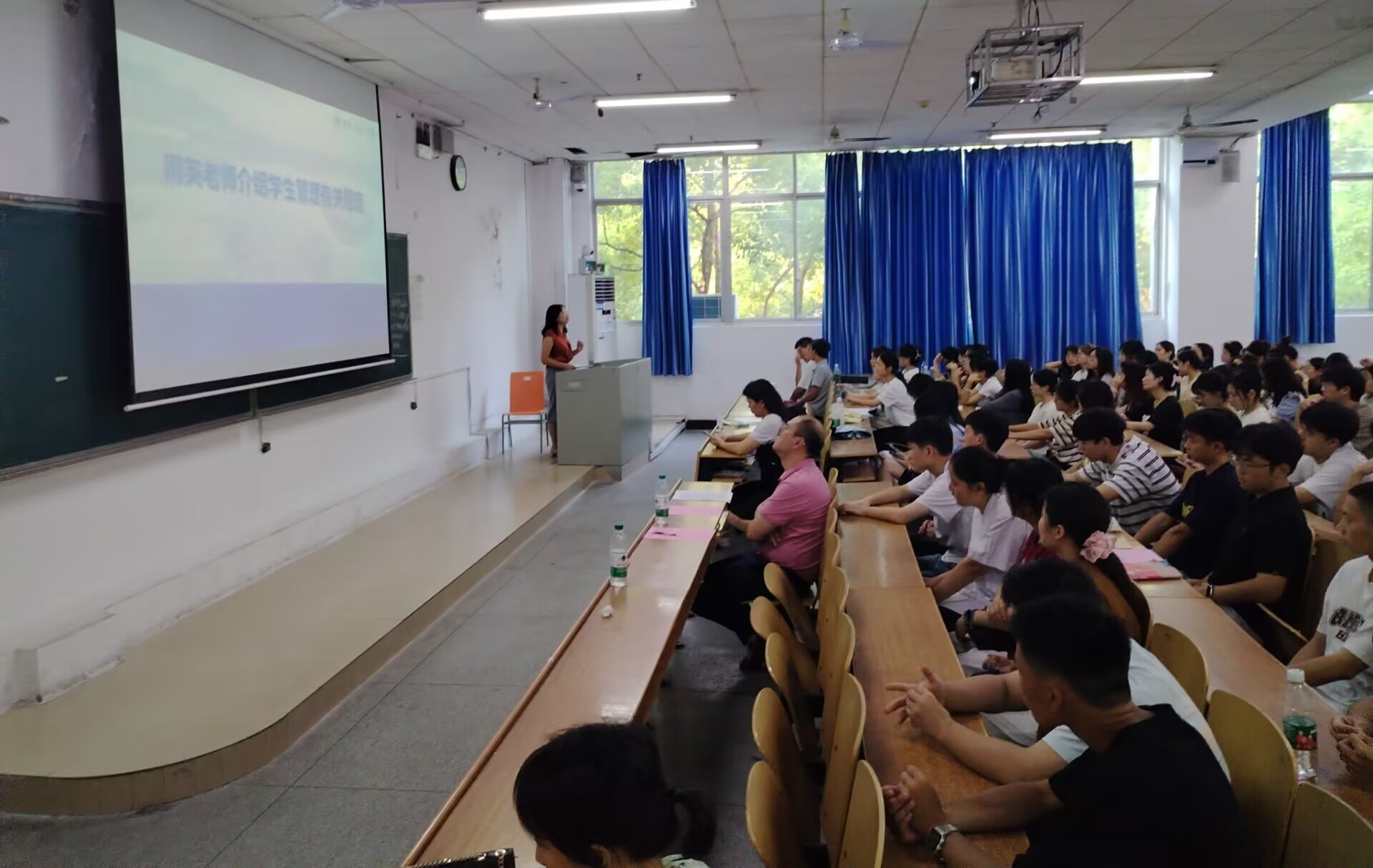 第二阶段入学教育,教务室主任唐慧介绍教学管理有关规定以及教务室老师分工和联系方式。学工室主任周英着重强调了学院学生管理规章制度,并鼓励新生们努力学习,争取拿到奖学金。