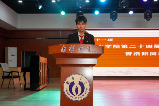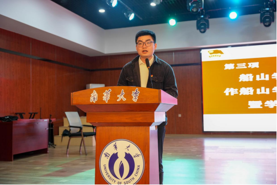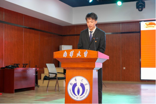 第二十四届学生会执行主席曾浩阳作为新一届学生干部代表发言;第二十四届团委常务副书记蔡睿宣读《倡议书》。