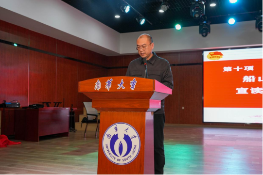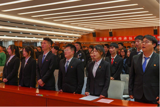 学院党委副书记殷志老师宣布船山学院新一届团委学生会成员名单,学院领导老师为新一届学生干部代表发放聘书。