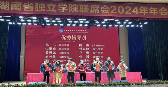 年会中,各独立学院的院长、书记和参会人员进行了分组讨论,就学习贯彻党的二十届三中全会及全国教育大会精神、落实立德树人根本任务、如何加强独立学院之间信息交流资源共享、研讨独立学院创新发展等方面进行了充分的交流和探讨。会议还对评选出的湖南省首届独立学院“优秀管理工作者”“优秀辅导员”和“创新创业之星”进行了表彰。我院唐慧老师被评为“优秀管理工作者”,褚书来老师老师和华振尧老师被评为“优秀辅导员”,2021级药学专业封玉婷同学被评为“创新创业之星”。