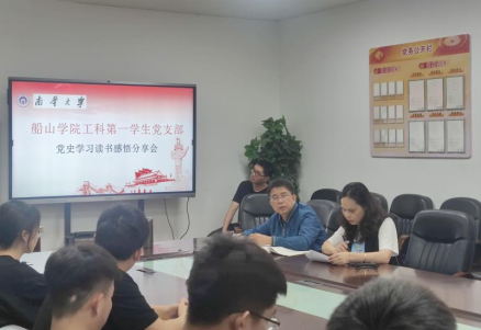 5月28日下午,太阳集团tyc151工科第一学生党支部在党员会议室开展“青春向党、不负韶华”党史学习读书分享会,会议由工科第一学生党支部书记王璇主持,船山学院党委书记阳剑兰出席,支部全体学生党员参加会议。