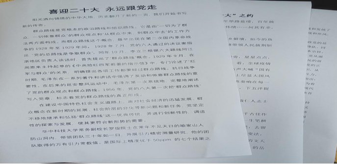 10月22日中国共产党第二十次全国代表大会胜利闭幕,船山学院采取多种形式组织师生学习党的二十大精神,营造学习宣传贯彻党的二十大精神的浓厚氛围,强化班级党建工作,促进学生全面成长成才,组织船山学院“党的二十大和我的人生路”征文比赛。