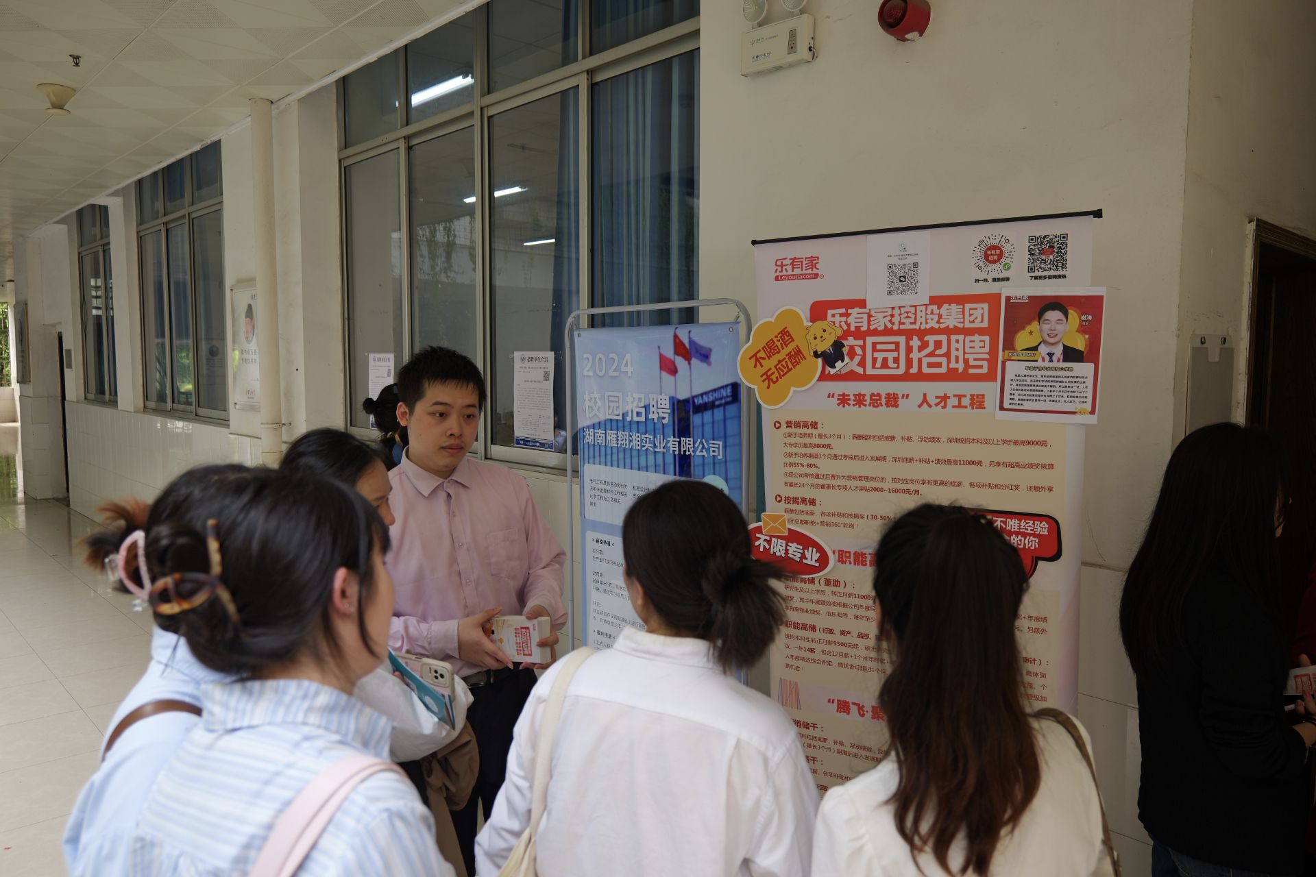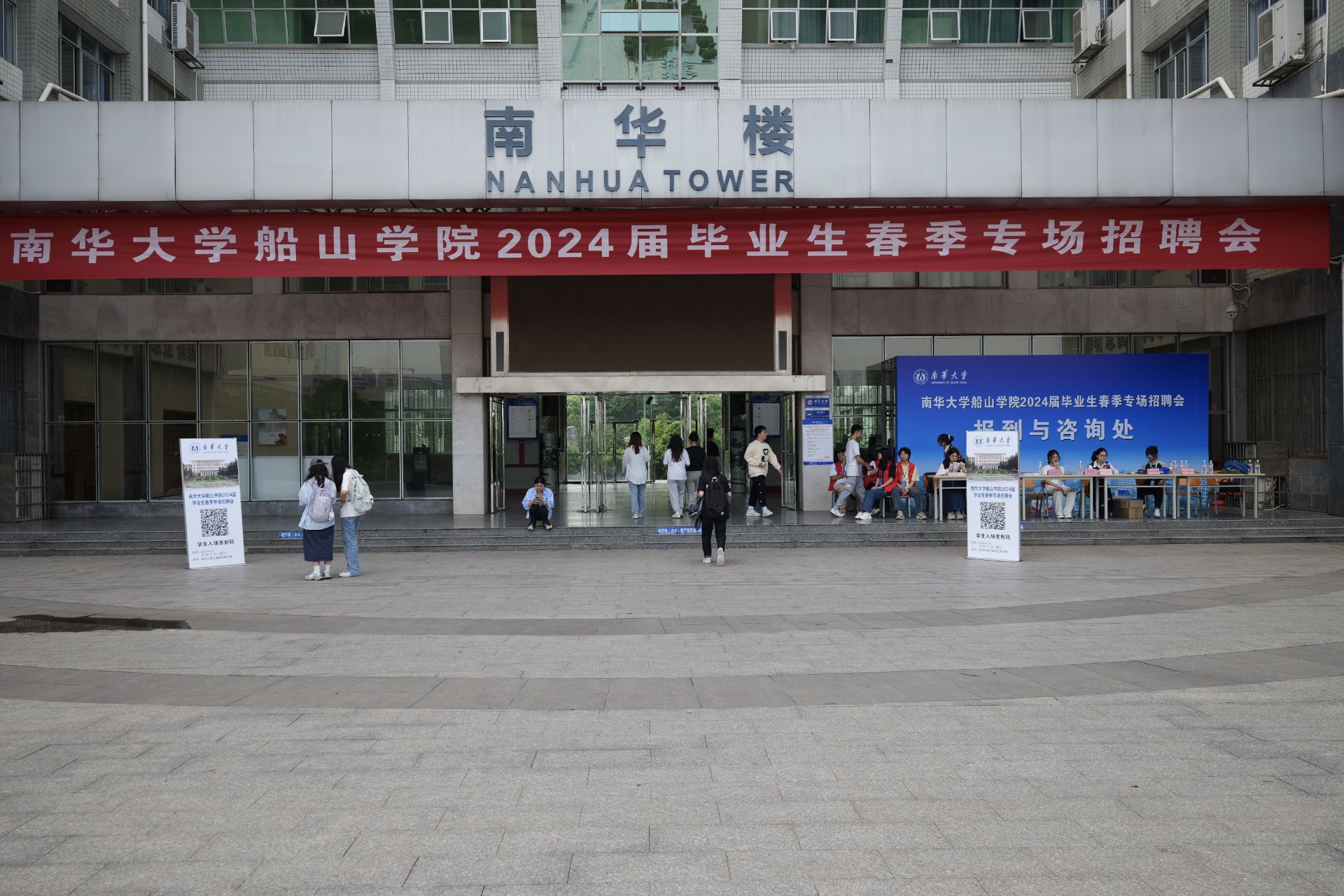 为促进毕业生高质量就业,4月13日下午,我院在南华楼举办2024届毕业生春季专场招聘会。本次招聘会会设置了服务咨询点,并为用人单位配置了相应的志愿者。学生可通过我院志愿者所发放的招聘会展位安排表和企业宣传单了解本次招聘会和企业的相关信息。