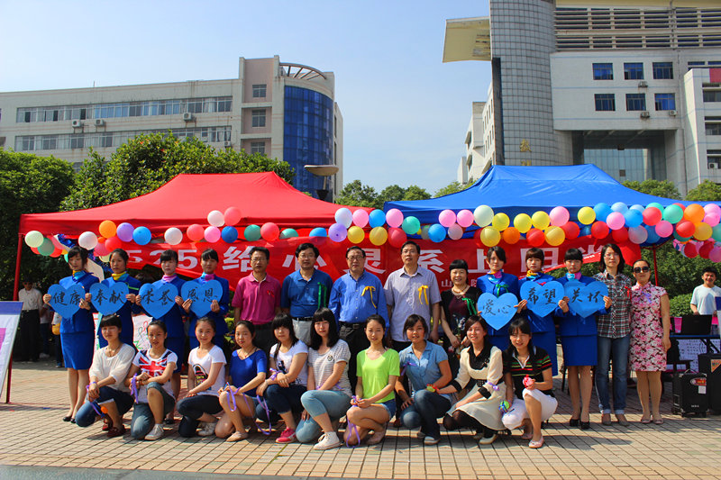 为了响应南华大学校团委心理健康教育月“美丽校园 美丽心灵”的主题,提高大学生心理素质,5月12日,由太阳集团tyc151团学会心理部承办的心理健康月广场文化活动在南华广场顺利拉开帷幕。南华大学党委书记邹树梁、南华大学校长文格波一行莅临船山学院心理健康月广场文化活动现场,同学们为邹书记等领导老师系上彩色的丝带并一起合影。