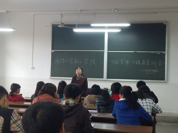 本次会议为我院11级心理健康教育的开展具有重大意义,希望各班心理委员能够各尽其职,及时向学校及老师反映同学们的心理状况,进一步加强我院的心理健康教育建设,为同学们营造一个温馨、愉快的学习生活环境。