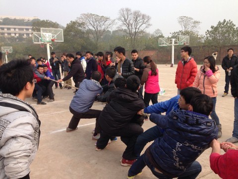 2013年12月21日(星期六)上午,拔河比赛在南华大学雨母校区老篮球场正式开始。参加本次比赛的学院共有八个,每个学院选出男女混合代表队,每个学院均有同学到场观看比赛,并为选手们加油、鼓劲。