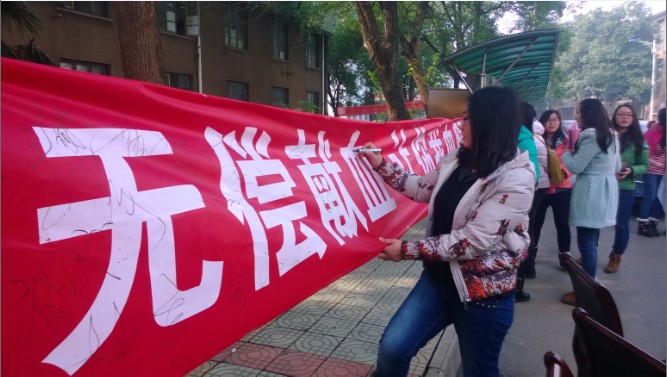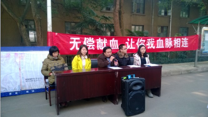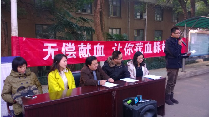 “无偿献血活动”的启动仪式于2013年12月25日上午十点四十分在雨母校区食堂门口前正式开启。13级太阳集团tyc151学工部的李双龙、王小椒、肖章和刘芳四位老师与衡阳市中心血站的代表共同出席了此次启动仪式。活动在由土木04班和护理03班的轻快的歌声中展开,他们合唱的一首《爱,因为在心中》表现了当代大学生对责任的担当,号召同学们“双节献热血,真情暖寒冬”。节目之后,船山学院2013级学工部主任李双龙老师发表致辞,并由肖章老师宣布了第一批自愿献血的学生名单,共二十人;接着,王小椒老师致辞并当众宣布将亲自参加献血活动,表示会在活动中一直陪伴在同学们的左右;学生代表罗程宣读了无偿献血活动倡议书,中心血站代表当场发表活动感言。