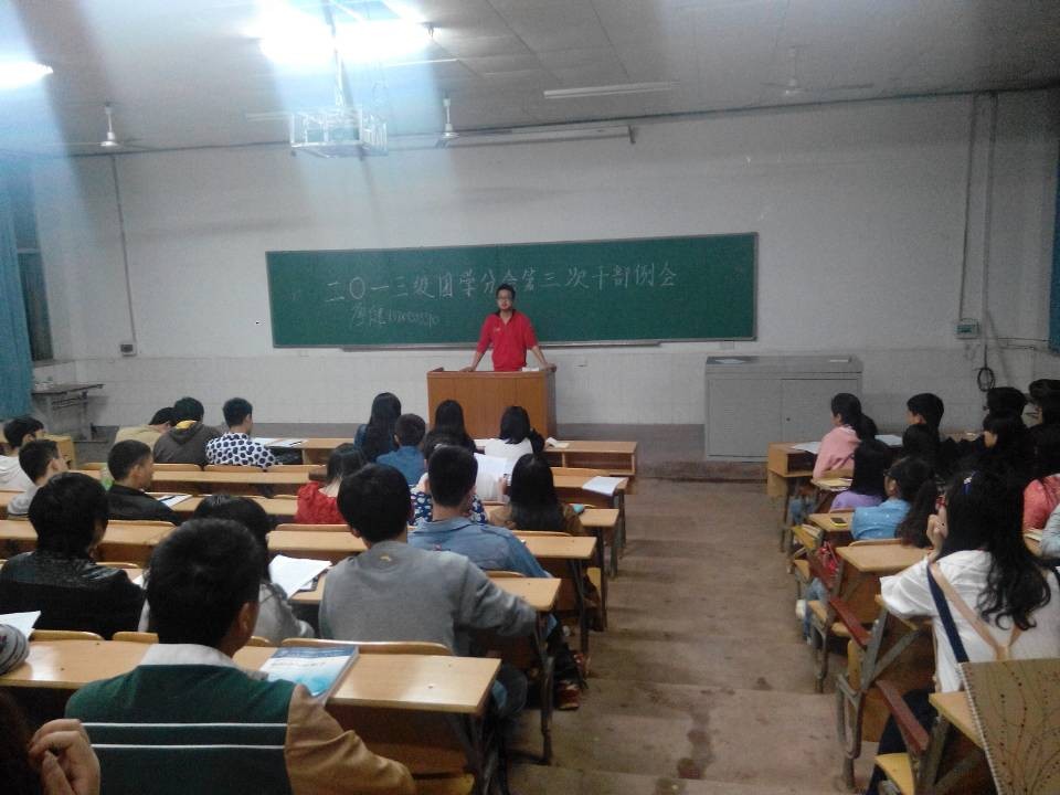 2014年4月13号晚7点,太阳集团tyc1512013级团学分会在2教104举行第三次干部例会。与会人员为船山学院2013级团学分会干部。会议首先由2013级团学分会主席赵朝发言,赵朝就例会效率、工作责任心、学习三个方面提出一些要求和建议,强调了例会的出勤率,并要求大家提高工作热情,而不忘重视学习,处理好工作和学习的关系。最后,赵朝介绍了两名新进主席团成员——朱楚峰和廖健。讲话结束后,由廖健和朱楚峰来发表他们的就职感言。廖健主要就办公室的职责指出一些工作要点,他承诺会带领办公室走得更好,同时强调了各干部对办公室工作人员需注意态度问题;另外指出一些关于申请活动的细节内容,并安排了部分成员到其他部门进行交流与合作。朱楚峰与大家交流了一下社团部的工作发展。在这之后,书记曾令竹就最近的评优评先活动强调了学习的重要性,另外针对各部门的工作作风与态度提出了几点要求。最后由副主席彭浩就“雁城说雁”和“趣味运动会”这两个活动安排了一下工作。 台上积极发言,台下认真记录,会场一片安静,氛围甚是融洽。会后各部门积极提出意见,相互交流,会议热情高涨。 该次例会体现出主席团对各部门的积极领导,增进了各部门之间的交流,让各部门的工作得到了总结和升华,有利于船山学院2013级团学分会更好地发展。