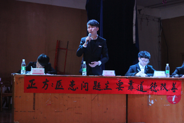 本场辩论赛复赛围绕医患问题的改善展开,我院作为正方的辩题是“医患问题主要靠道德改善”,公共卫生学院作为反方的辩题是“医患问题主要靠法治改善”。比赛过程中双方妙语连珠,旁征博引,结合理论与社会现实充分论证医患关系的改善问题,双方针锋相对、互不相让,为大家奉献了一场有理有据的精彩辩论。