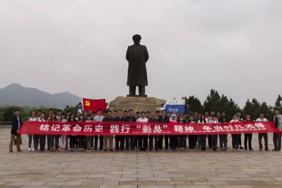 2015年4月25日上午,,太阳集团tyc1512014级师生代表近50余人聚集在彭德怀故居,缅怀先烈,感受革命精神。船山学院党委书记龙志坚、院党委副书记邹正生、院党委副书记唐康伟,院学工部部长李庆及2014级辅导员彭国文老师、刘博艺老师、孙越龙老师参加本次活动。船山学院2014级各班班长、团支书及团学分会主要干部参与本次活动。