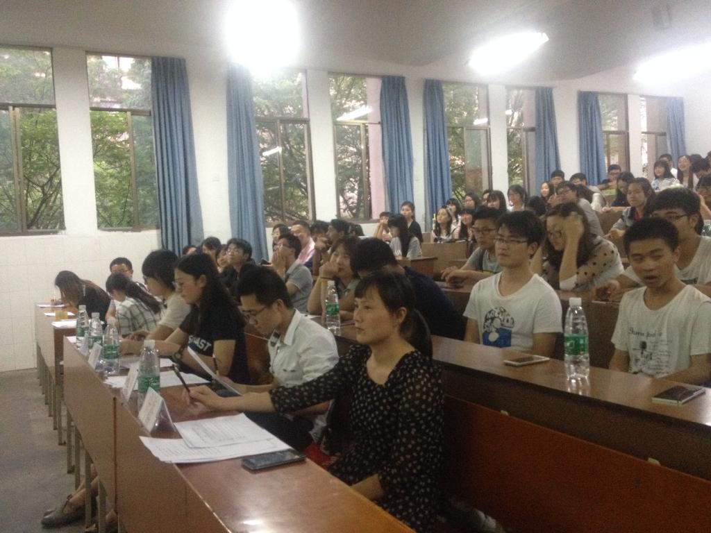 为了提高同学们学习英语的积极性,丰富同学们的课余文化生活,更好地挖掘人才,并为我院迎接南华大学第十五届英语演讲比赛暨湖南省普通高校第二十一届英语演讲比赛选拔优秀的选手。5月9日晚7点,由太阳集团tyc151团学会策划、船山2013级团学分会学习部主办的船山学院2015年英语演讲2013级比赛初赛在红湘校区2-225教室举办。本次比赛由14级机械二班曾志良与13级会计四班陈芙嘉担任主持。由外国语学院的叶梅老师与几位曾在湖南省英语演讲比赛中获奖的学生担任评委。13级各班皆选出了近十名观众到场观看。 本次比赛的主题是“少即多(less is more)”。比赛共有12名选手参加,其中非英语专业组7人、英语专业组5人。比赛分为自我介绍、命题演讲(以“less is more”为主题)以及即兴演讲三个环节。参赛选手围绕着“少多(less is more)”这个主题,结合自己的生活经验做了自己的体会与思考,进行了精彩纷呈的演讲。第三个即兴演讲环节中,参赛选手更是用自己的满腔热情充分展示了各自的机智与才华,博得台下观众一阵又一阵热烈的掌声。其中,在非英语专业组与英语专业组演讲结束时,评委曾园园学姐与洛宾鹏学长分别对选手的表现进行了精心的点评;主持人曾志良做了现场歌唱表演,缓解了现场的紧张气氛。 最后,经过激烈的比赛,评选出6名选手(英语专业组3名,非英语专业组3名)晋级到5月16日在红湘校区图书馆报告大厅的决赛中。其中,英语专业组的第一是英语一班的朱买成,第二是英语一班的滕旭,第三是英语二班的梅青;非英语专业组的第一是会计四班的尹意翔,第二是会计三班的赵伊,第三是软件一班的徐银玉。 最终,外国语学院的叶梅老师对本次比赛做了总结,她对选手们的英语水平给予了肯定,又为各选手提出了建议,希望选手们演讲时要更口语化,更自信,不要紧张。之后,参赛选手与评委、主持人合影留念,至此,本次比赛圆满结束。