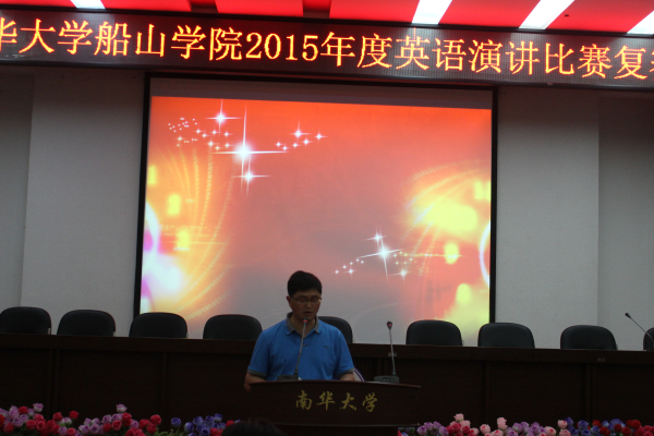 5月18日晚,我院第十五届英语演讲比赛复赛于南华大学红湘校区图书馆报告厅成功举行。船山学院党委副书记唐康伟、船山学院副院长何啸峰、副院长樊华等学院领导及各年级辅导员老师出席了本次活动。此外,还特别邀请了外国语学院副院长蒋天平老师出席本次活动。