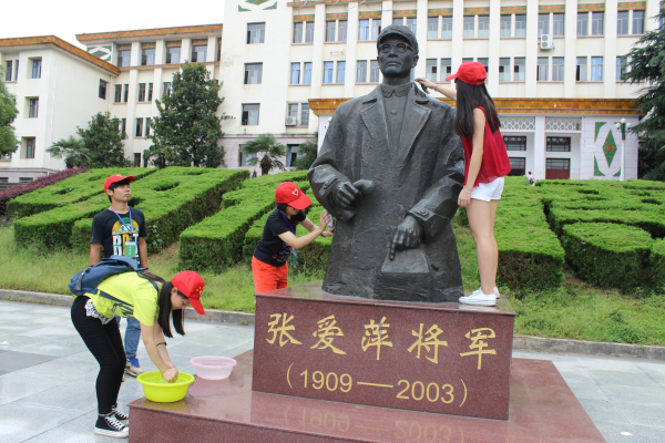 首先,船山学院团委青年志愿队的同学们通过清洗张爱萍将军铜像的形式表达对先烈的缅怀之情。接着,志愿者们向路过的同学们分发纪念抗战胜利宣传册,并号召同学们在主题展板上签名,以激发同学们炽热的爱国主义情感,增强我们强烈的民族自豪感和民族自尊心,表达我们对维护世界和平的坚定决心。活动过程中,同学们还参观了第二教学楼的王船山纪念馆,整个纪念活动井然有序地进行着。