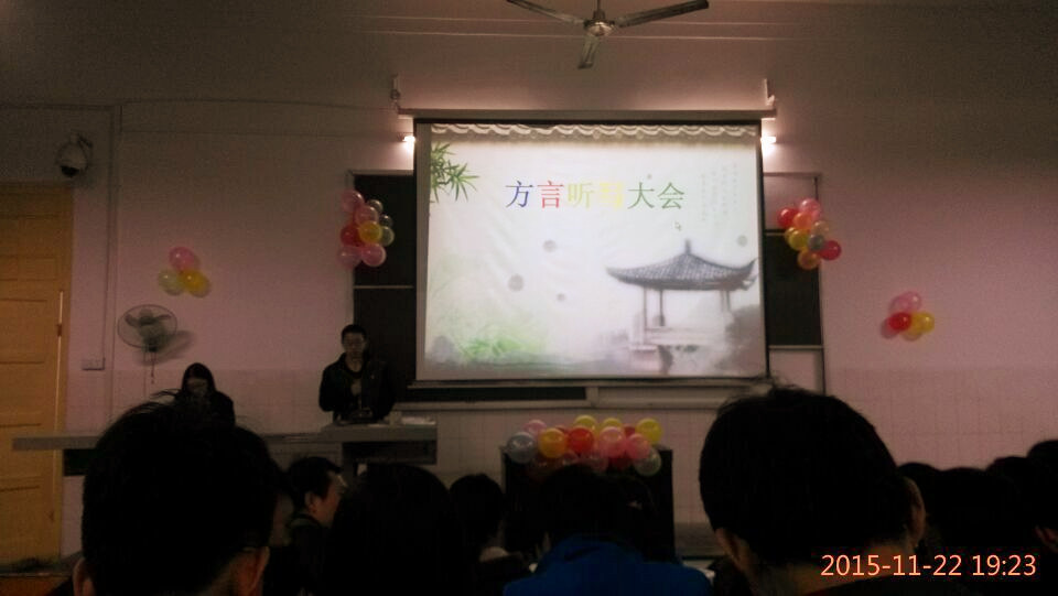 2015年11月22日晚上7点,由船山学院13级团学分会组织、13级团学分会学习部主办的“方言听写大赛”在二教225顺利举行。本次比赛由我院13级团学分会学习部部长张政吉主持,参与的有我院13级团学分会全体干部及13级各班代表。