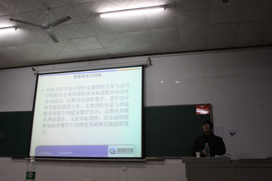 陈代娣老师在会上向大家讲解了电子设计大赛的竞赛规则、交流平台、奖励措施,并鼓励同学们积极参与电子设计大赛,敢于创新。