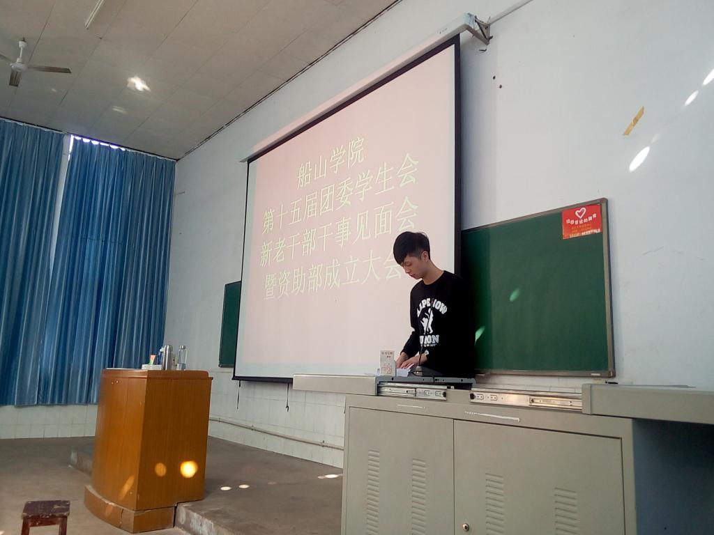 2015年12月17日中午12点40分,船山学院第十五届团委学生会新老干部见面会暨资助部成立大会在南华大学雨母校区二教204教室成功召开。会议以团委学生会第十五届新成员与新任干部见面交流为主题展开。