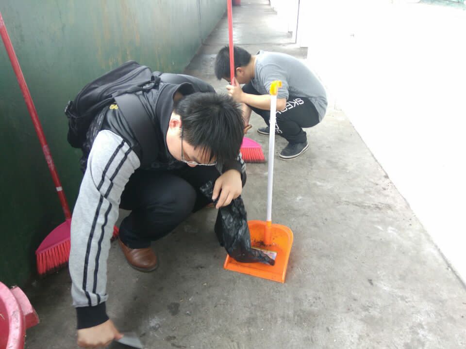 打扫现场,同学们仔仔细细用扫帚将垃圾倒入垃圾桶,用清洁铲清理口香糖及牛皮癣等顽固垃圾,通过多种方式对楼层走廊和楼梯间进行深度的垃圾清理。本次义务劳动共分7个任务小组,经过一下午的劳动,义务打扫顺利完成。