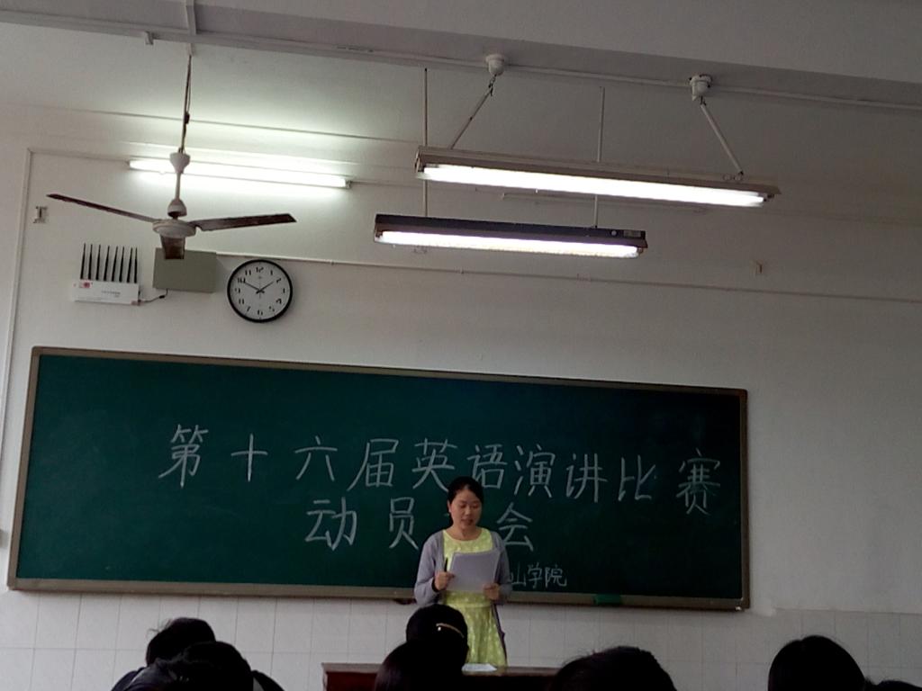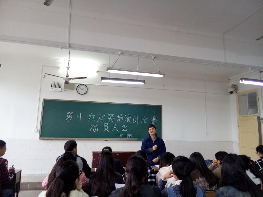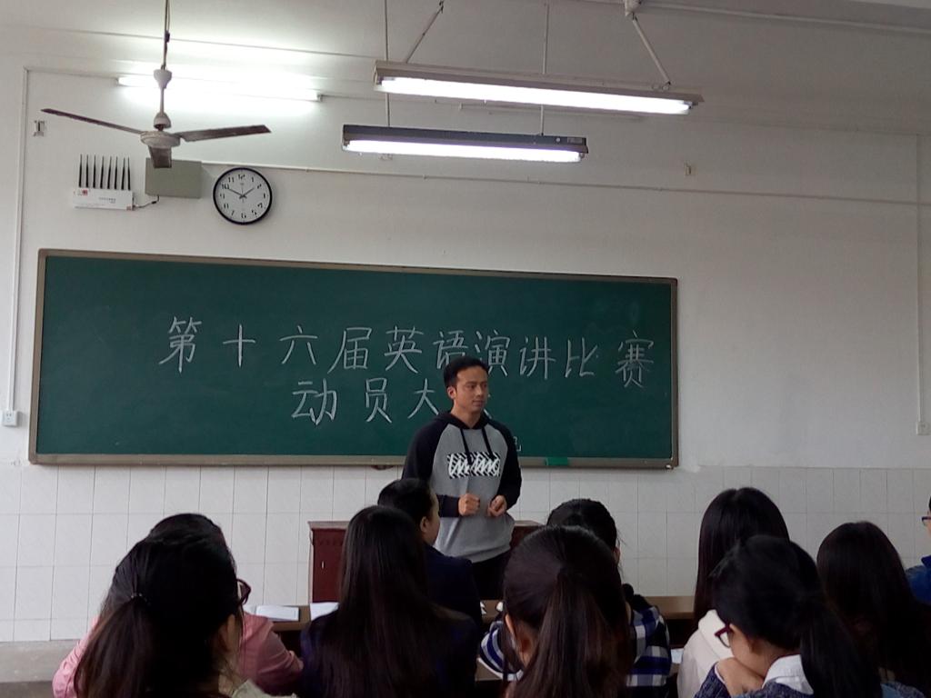 2016年4月7日中午12点,船山学院第十六届英语演讲比赛动员大会在第二教学楼217教室顺利召开,船山学院副院长何啸峰老师、综合科周孝兰老师、2014级辅导员刘博艺老师和孙越龙老师出席本次会议,2014级各班班长、团支书、学习委员参加本次会议。会议由孙越龙老师主持。