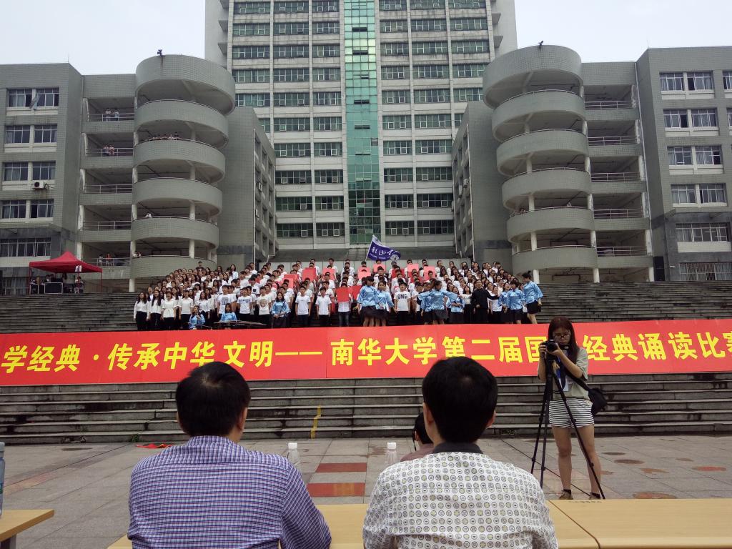 为进一步弘扬中国优秀传统文化,5月7日上午,南华大学“家规师训”国学经典诵读大赛在南华广场隆重举行。活动在婉转的歌声中拉开帷幕,朝气蓬勃的舞龙舞狮队让人过目难忘,迎来了南华学子的阵阵掌声。我院以古筝二胡演奏、汉服表演等丰富形式,配合300多位船山学子共同诵读使人心潮澎湃、热血沸腾的《少年中国说》。最终我院取得本次国学经典诵读比赛第三名的好成绩。