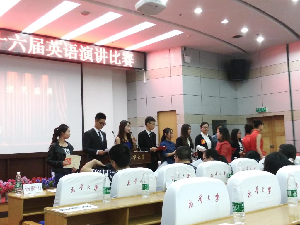 最终,李睿欣同学以其精彩的演讲获得非专业组最高分,黄雅琴、莫兰同学获二等奖,胡瑜、周倩、吕慧娥同学获得三等奖;黄颖安同学获得专业组最高分,陶陶、李茂元同学获得二等奖,罗子兰、谭昊程、李敏同学获得三等奖。