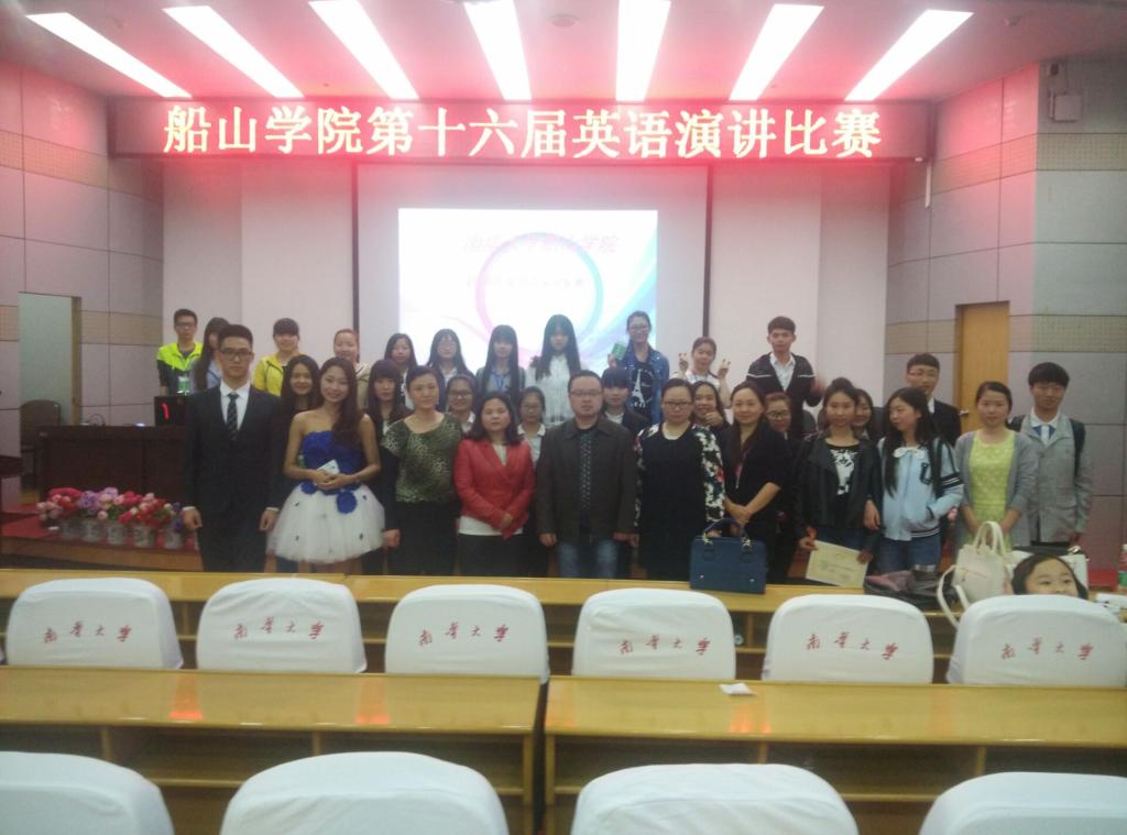 为激发同学们对英语学习的兴趣,提高对英语的热情,并为我院参加校级和省级英语演讲比赛提拔更多的优秀人才,5月8日晚7点30分,船山学院于图书馆报告厅举办了英语演讲比赛。外国语学院周湘东老师、申丹老师、刘叶琳老师、左传果老师、欧晓南老师等应邀担任此次比赛的评委。