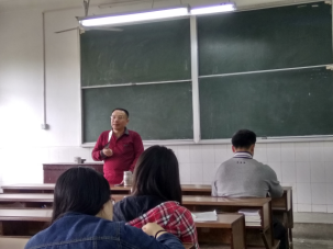 辅导员孙越龙在讲话中强调了学生新学期注册的注意事项、2014级男生需要注册兵役登记,并呼吁各班同学踊跃参加本周四晚将于红湘校区南校就业中心举办的招聘会,提醒各班班长做好五一放假工作,要同学们注意人身安全和财产安全。