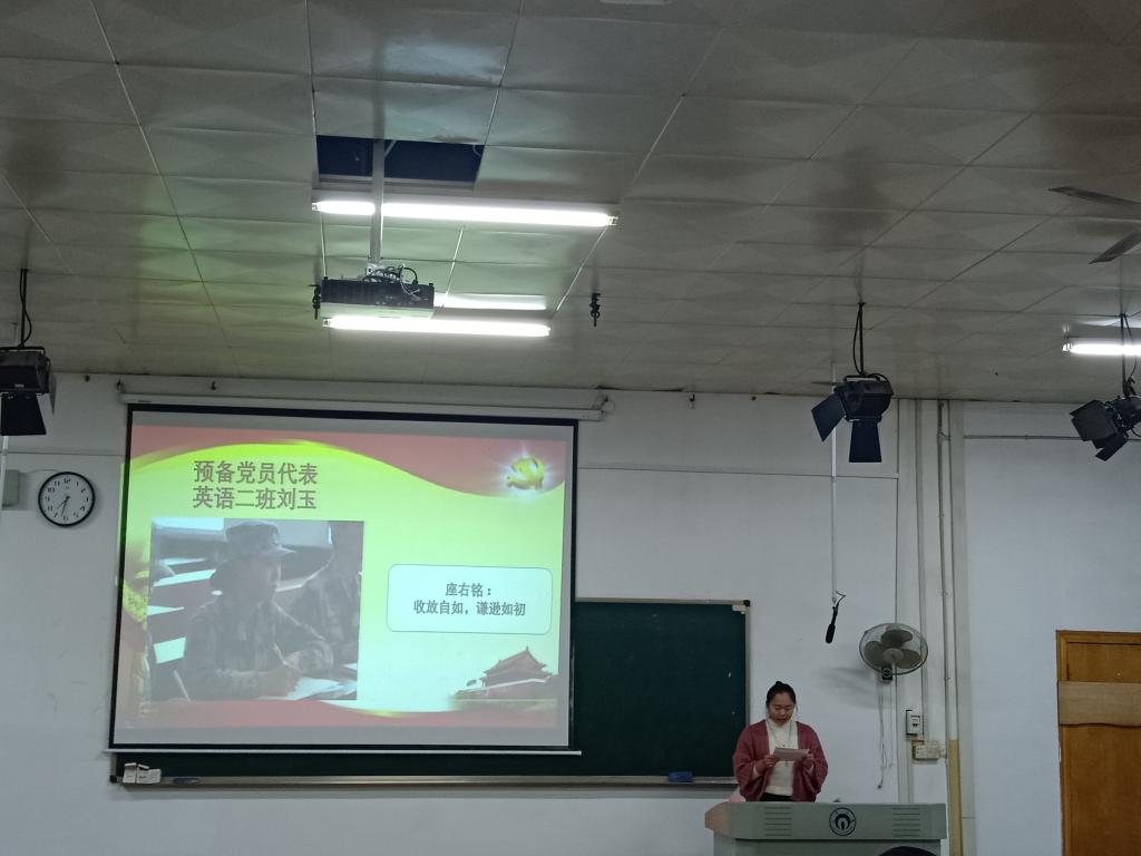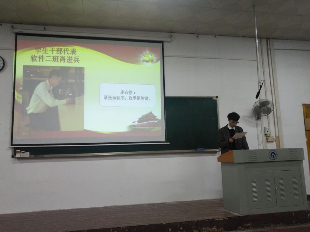 11月27日晚7时30分,由船山学院第五学生党支部举办的”2016级优秀学生代表宣讲会”活动于2教101教室成功举行,党支部书记屈慧琼、16级学工室负责人兼党支部纪检委员褚书来、党支部组织委员李晔出席了本次宣讲会,2016级各班学生代表参加了本次活动,宣讲会由预备党员张紫依主持。