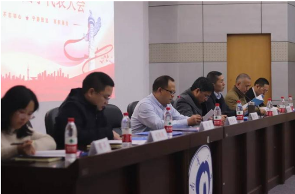 晚上7点30分,会议主持人刘期彪副书记宣布大会正式开始,与会全体人员起立,奏唱国歌。首先,船山学院院长曾庆生老师为此次大会致开幕词。他对出席会议的各级领导、老师及代表们表示热烈欢迎,并指出了此次大会的会议主题、主要议程和大会要求等。他希望代表们认真学习贯彻落实党的十九届六中全会精神,紧紧围绕“十四五”规划实施和二〇三五年远景目标,在建设文化强国、教育强国、人才强国的新征程中展现新作为,在新时代奋力谱写船山新篇章,为全面建设社会主义现代化国家、实现中华民族伟大复兴的中国梦作出更大的贡献。